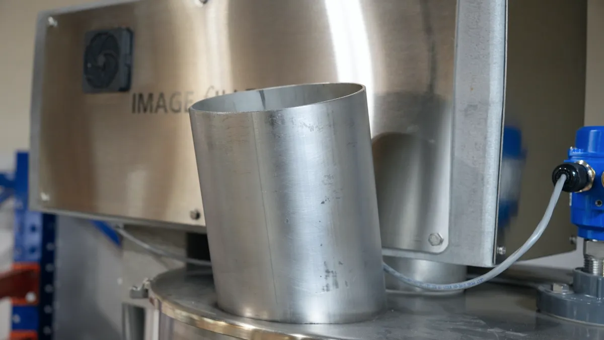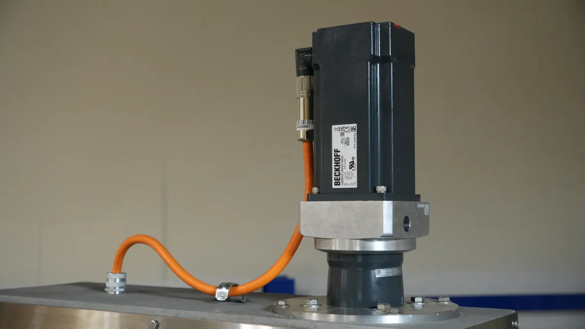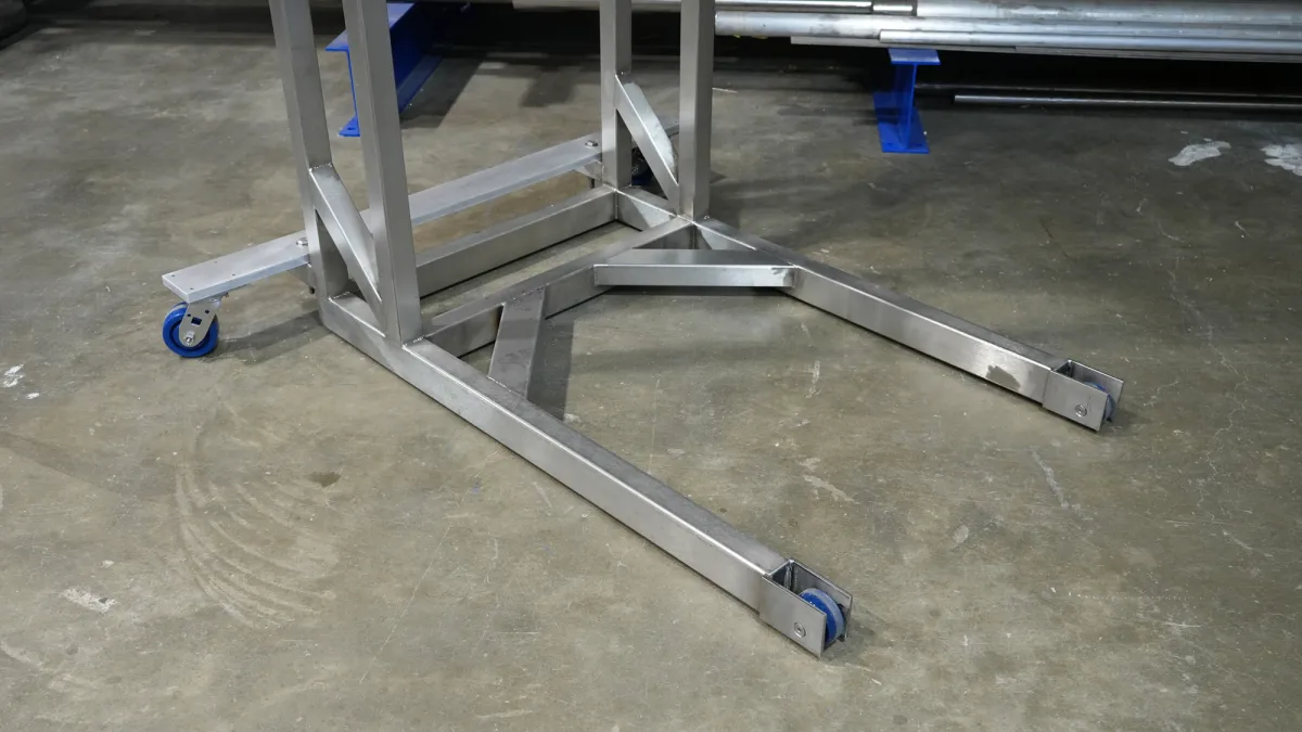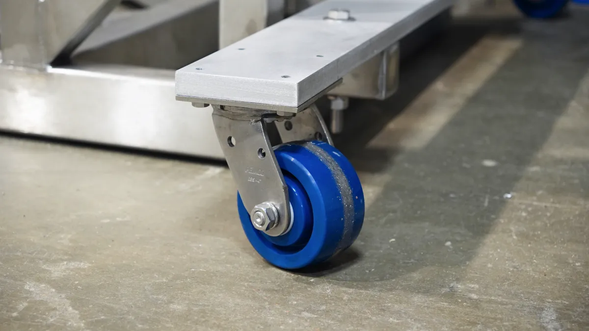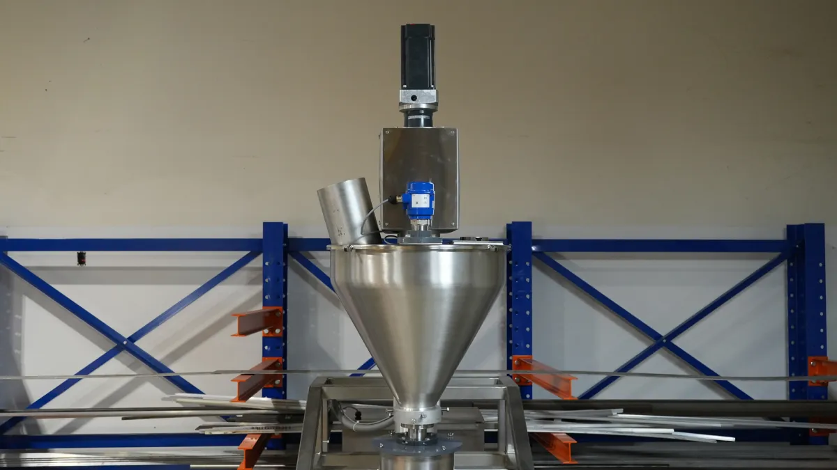 This elevated, stainless steel frame integrates easily with a bagger below. It features a precise servo motor, an advanced PLC with 100-recipe memory, and waterproof casters for durability and washdown capability.