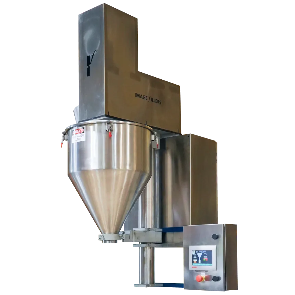 A consistent and reliable source of product is crucial for accuracy and overall operation of the filler. The product should be supplied within 2”-3” of the hopper to maintain proper pressure. The product may be either flood fed into the hopper or periodically resupplied by means of bulk type filler.